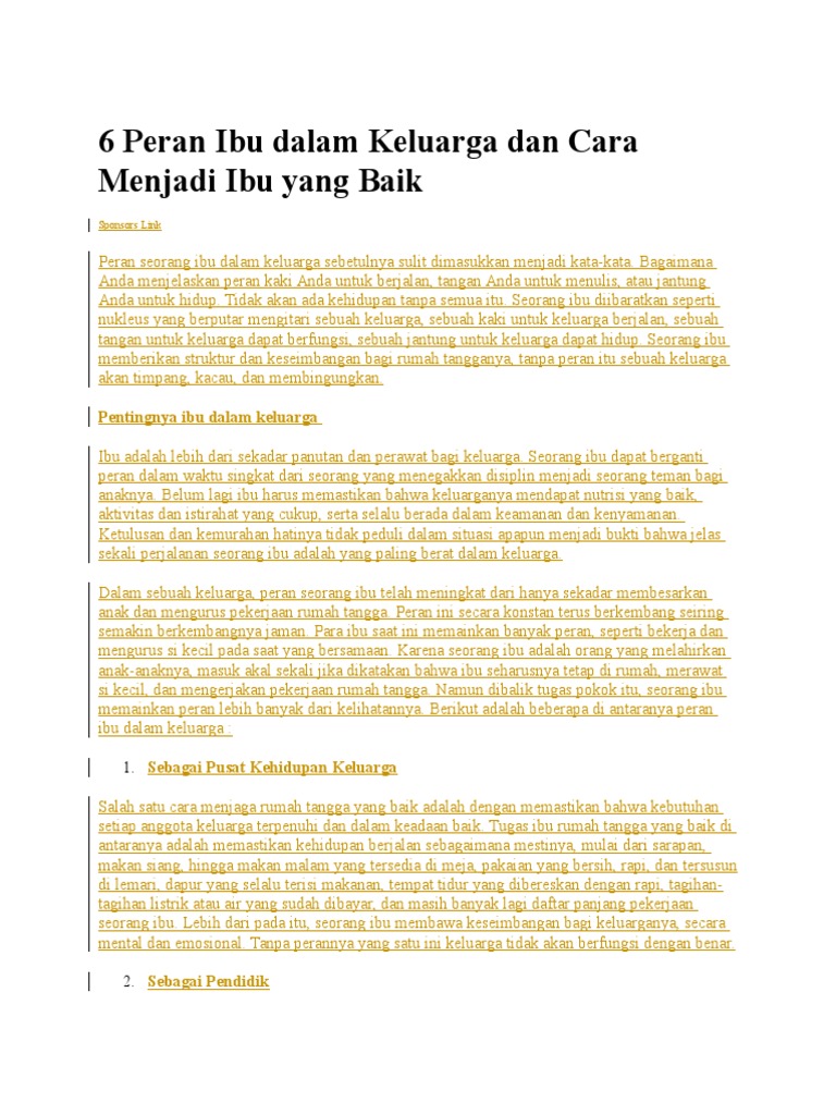 6 Peran Ibu Dalam Keluarga Dan Cara Menjadi Ibu Yang Baik